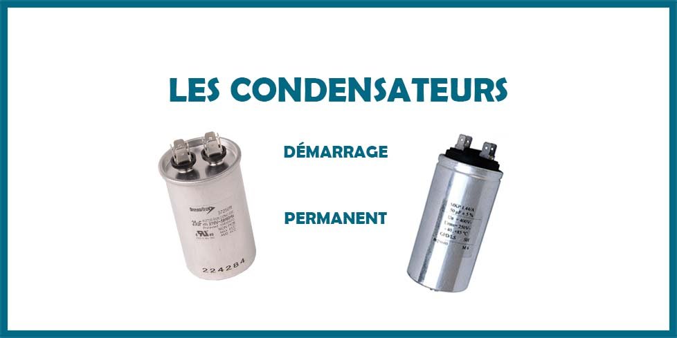 • Le condensateur de démarrage est souvent noir, tandis que le condensateur permanent est généralement blanc et plus volumineux. La capacité du condensateur de démarrage est généralement le double de celle du condensateur permanent.